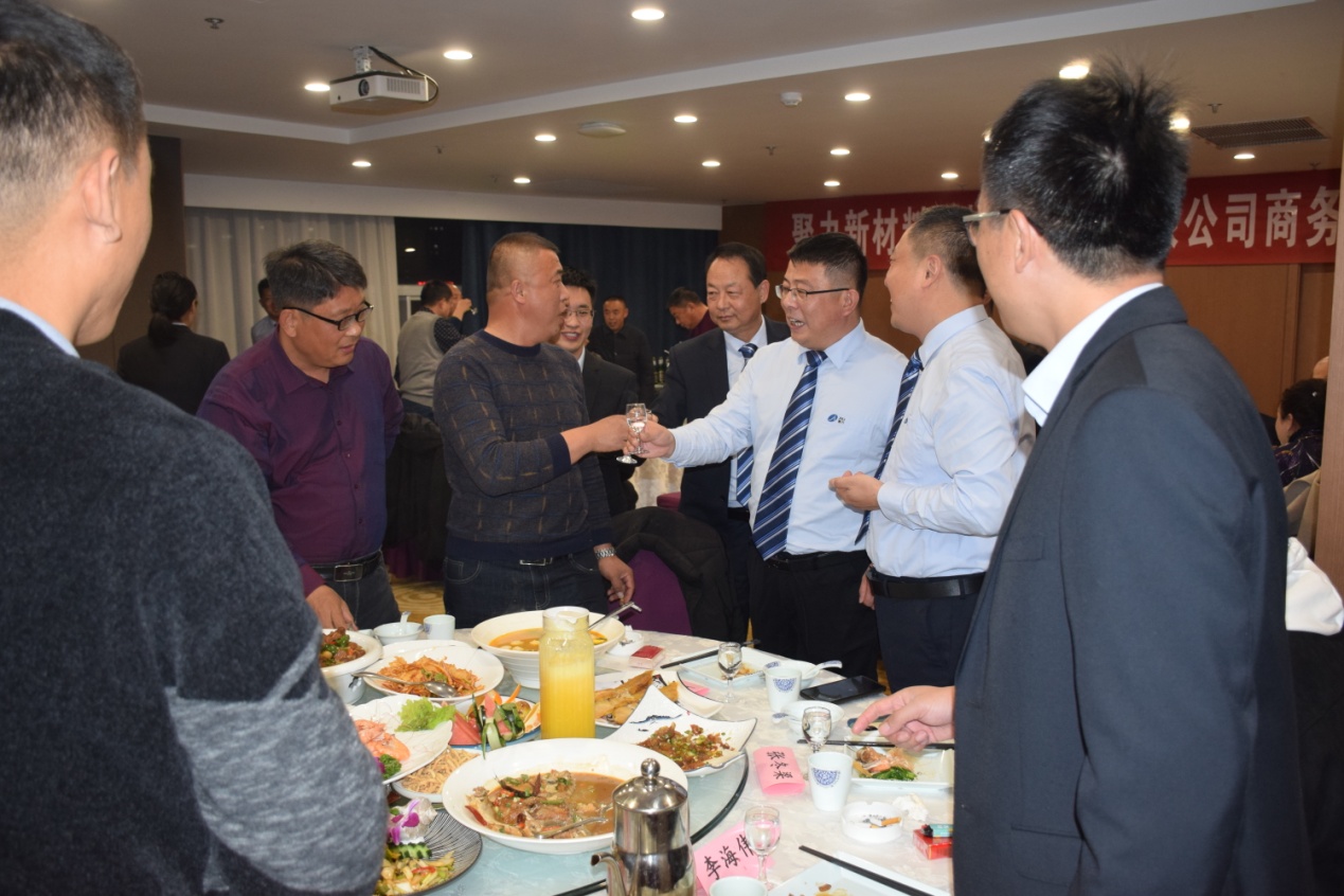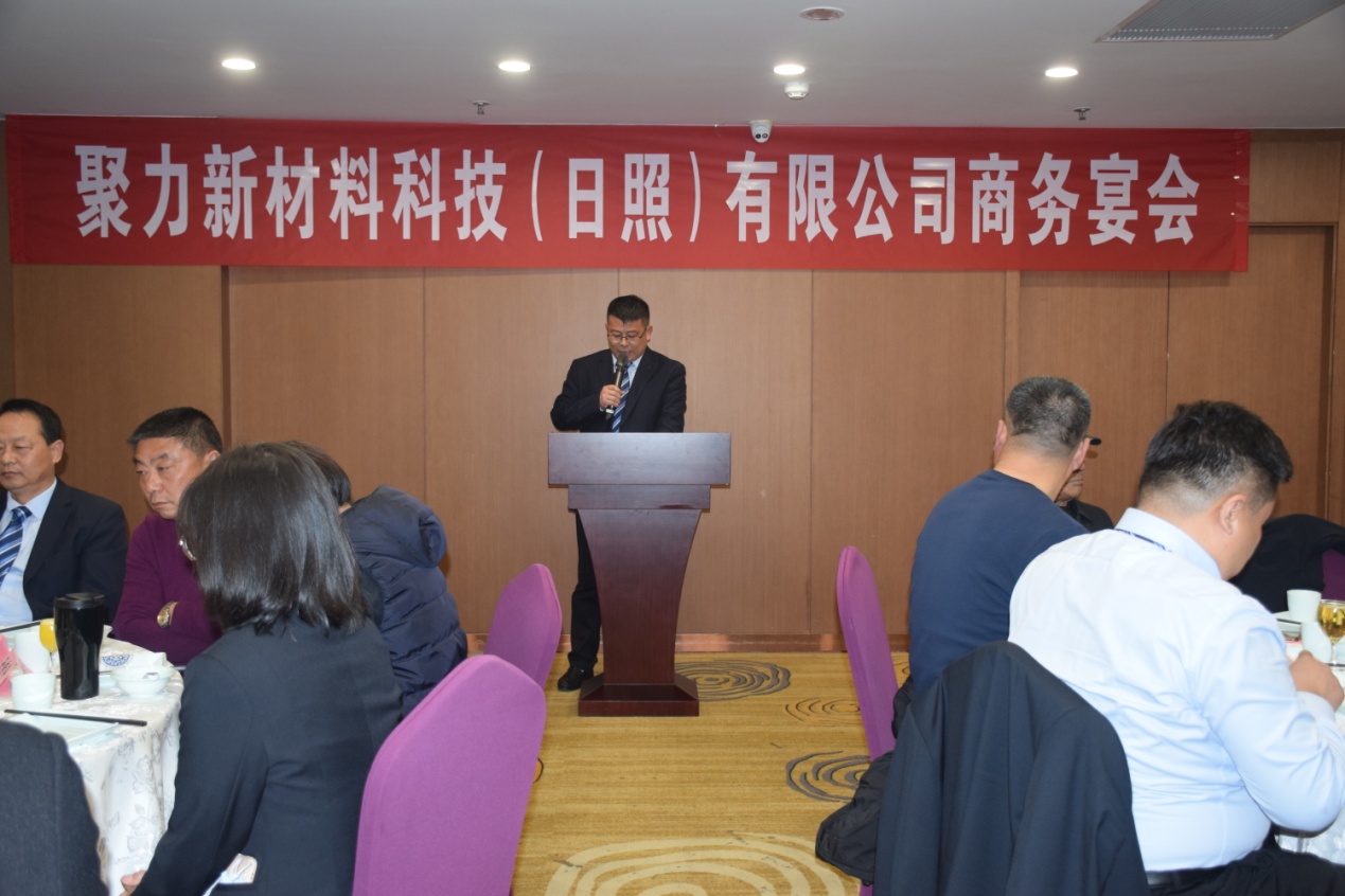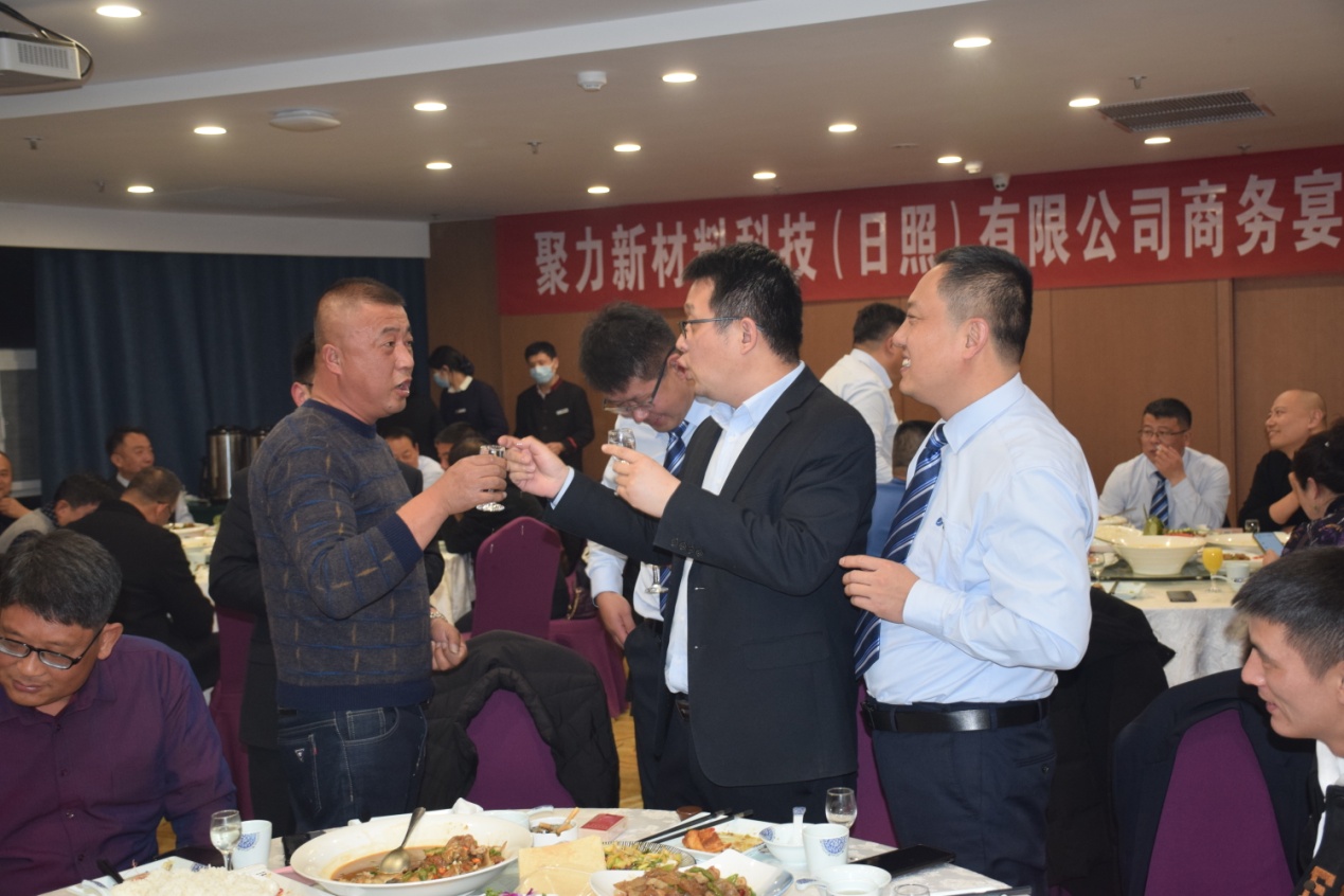 古人云“有朋自远方来,不亦乐乎”,12日晚,公司在日照君临天下大酒店举行了隆重的欢迎晚宴。宴会上来自江苏、山东两地的客商与公司高管及业务团队推杯换盏,觥筹交错,公司常务副总陈玉刚代表公司致欢迎词,对百忙之中拨冗莅临聚力新材料科技(日照)有限公司商务宴会的客商表示亲切的问候和热烈的欢迎! 并对所有关心、支持山东聚力集团发展的各界朋友致以崇高的敬意!